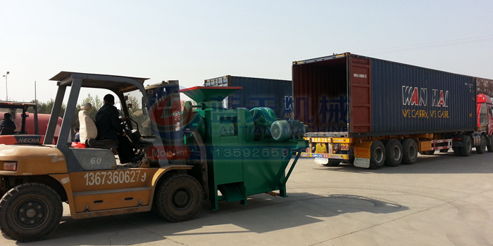 炭粉壓球機發(fā)往印度裝車現(xiàn)場