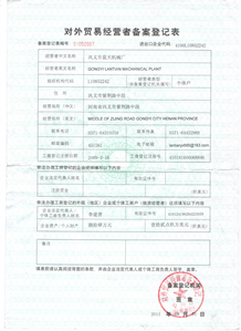 河南藍(lán)天機(jī)械制造有限公司2005年已被批準(zhǔn)為中國(guó)進(jìn)出口自主權(quán)企業(yè),歐盟CE認(rèn)證企業(yè),ISO國(guó)際質(zhì)量認(rèn)證企業(yè),德國(guó)TUV安全認(rèn)證,法國(guó)國(guó)際檢測(cè)局BV質(zhì)量認(rèn)證等,2006-2008年被評(píng)為鄭州市誠(chéng)信民營(yíng)企業(yè),鄭州市專利示范企業(yè),2013-2015年被評(píng)為市、鎮(zhèn)出口創(chuàng)匯先進(jìn)企業(yè),十佳經(jīng)營(yíng)者企業(yè)。目前已獲得國(guó)家專利十一項(xiàng),實(shí)用新型專利八項(xiàng),外觀專利三項(xiàng)。主打產(chǎn)品暢銷國(guó)內(nèi),并出口至中東、亞洲、非洲、北美洲、南美洲、大洋洲的幾十個(gè)國(guó)家和地區(qū)。