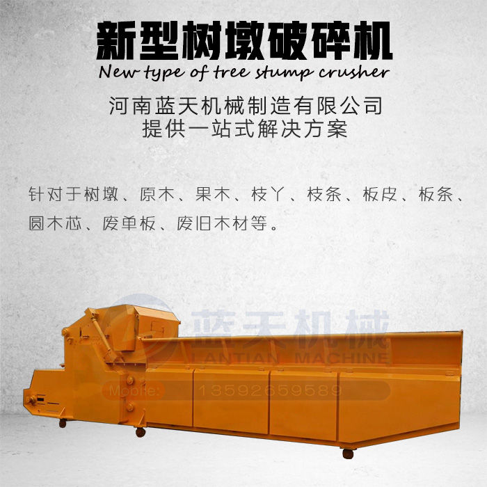 新型樹墩破碎機是河南藍天機械制造有限公司生產(chǎn)的國內(nèi)環(huán)保新型破碎產(chǎn)品,適用于刨花板、中密度板、木質(zhì)纖維板、造紙、電廠、鍋爐等工業(yè)。